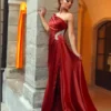 Cette robe est conçue pour les femmes qui apprécient le raffinement. Les fentes stratégiquement placées ajoutent une note de séduction, tandis que les strass délicatement appliqués soulignent la beauté subtile de la robe. Disponible en noir, rouge et terracotta, elle offre des options pour toutes les occasions.